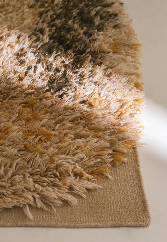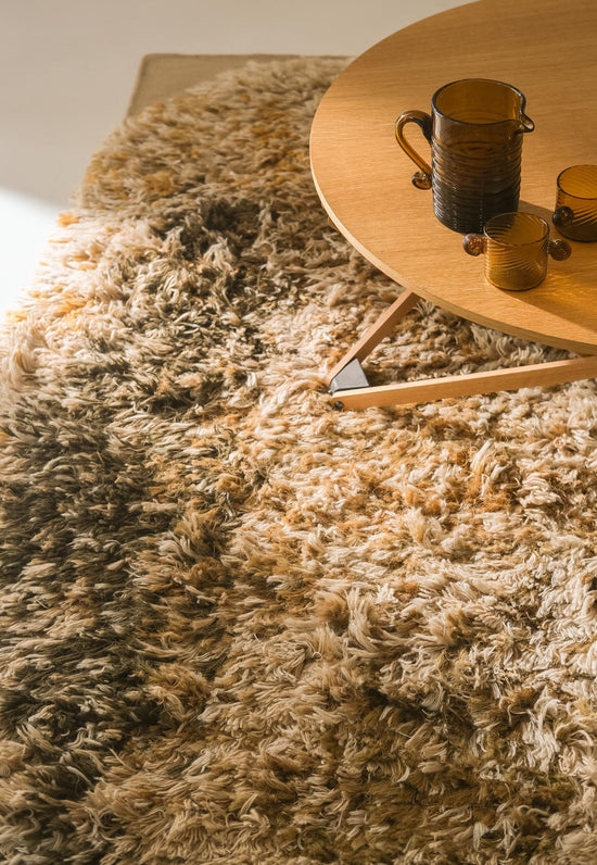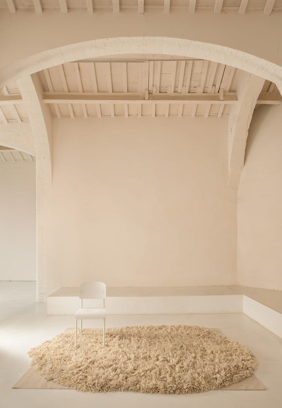 However, the complexity of its design goes beyond its form. The biggest challenge was to create a visually dynamic rug while using such long fibers. After an extensive process of trial and error, the creative team found the perfect formula: achieving volume required a careful balance of different fiber types, thread densities, and color variations.