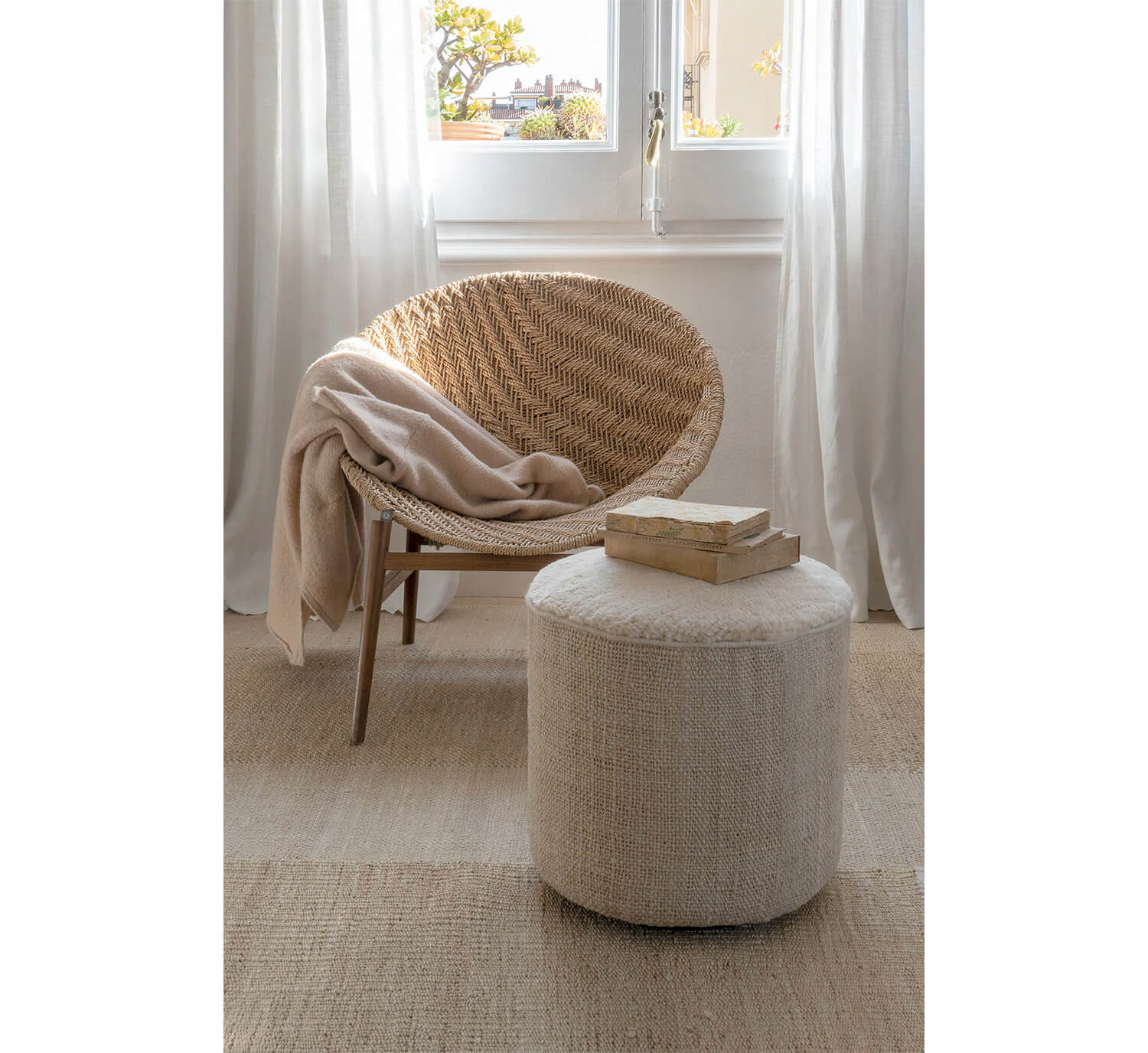 The successful collections Tres and Persian Colors come together to create a very special pouf, a lightweight cylindrical accessory that is manageable and suitable for any space. The seat fiber is very soft, providing a feeling of comfort and well-being.