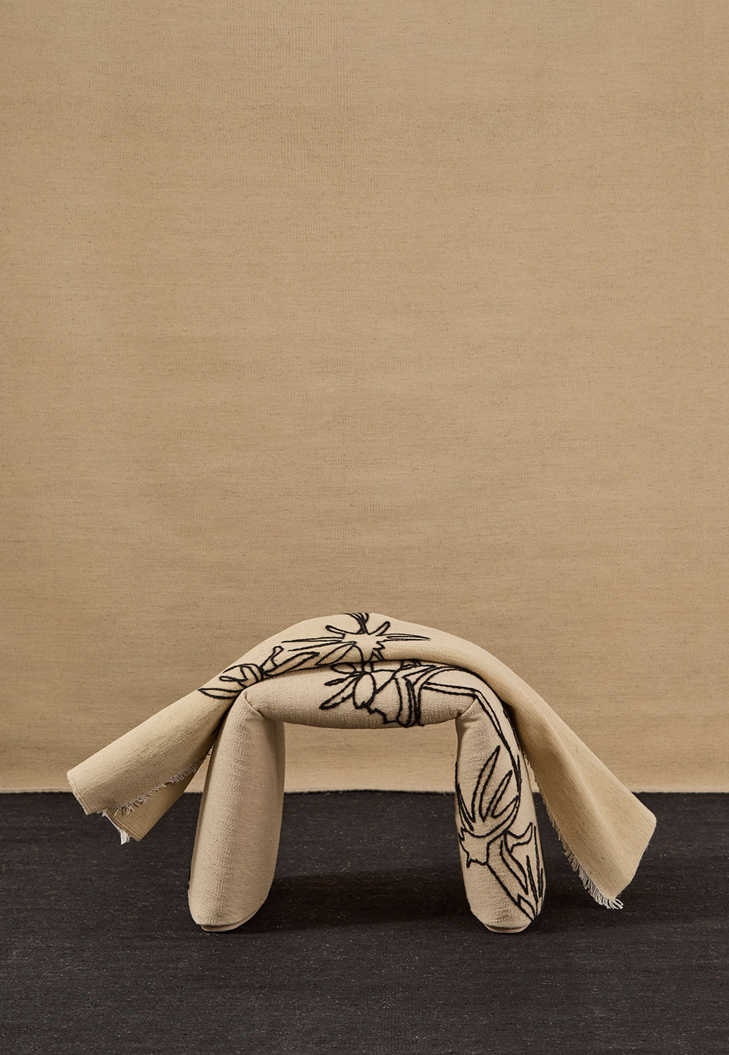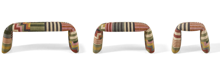 “With this bench, we wanted to explore new dimensions of the rug concept, taking it beyond its usual use and giving it a three-dimensional presence in space,” explains Nani Marquina.