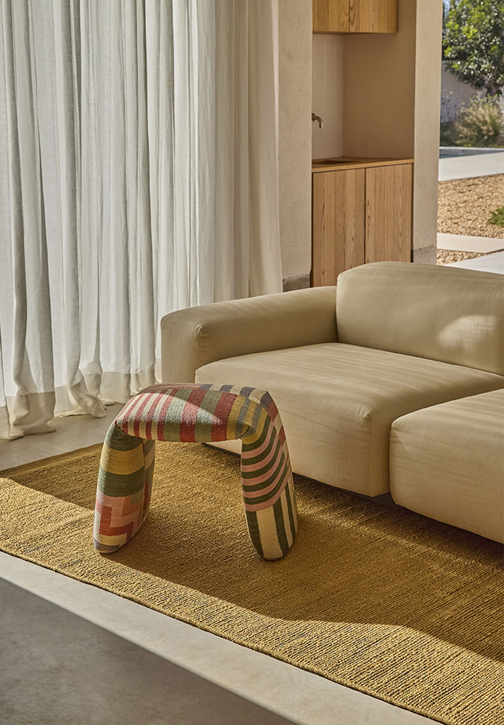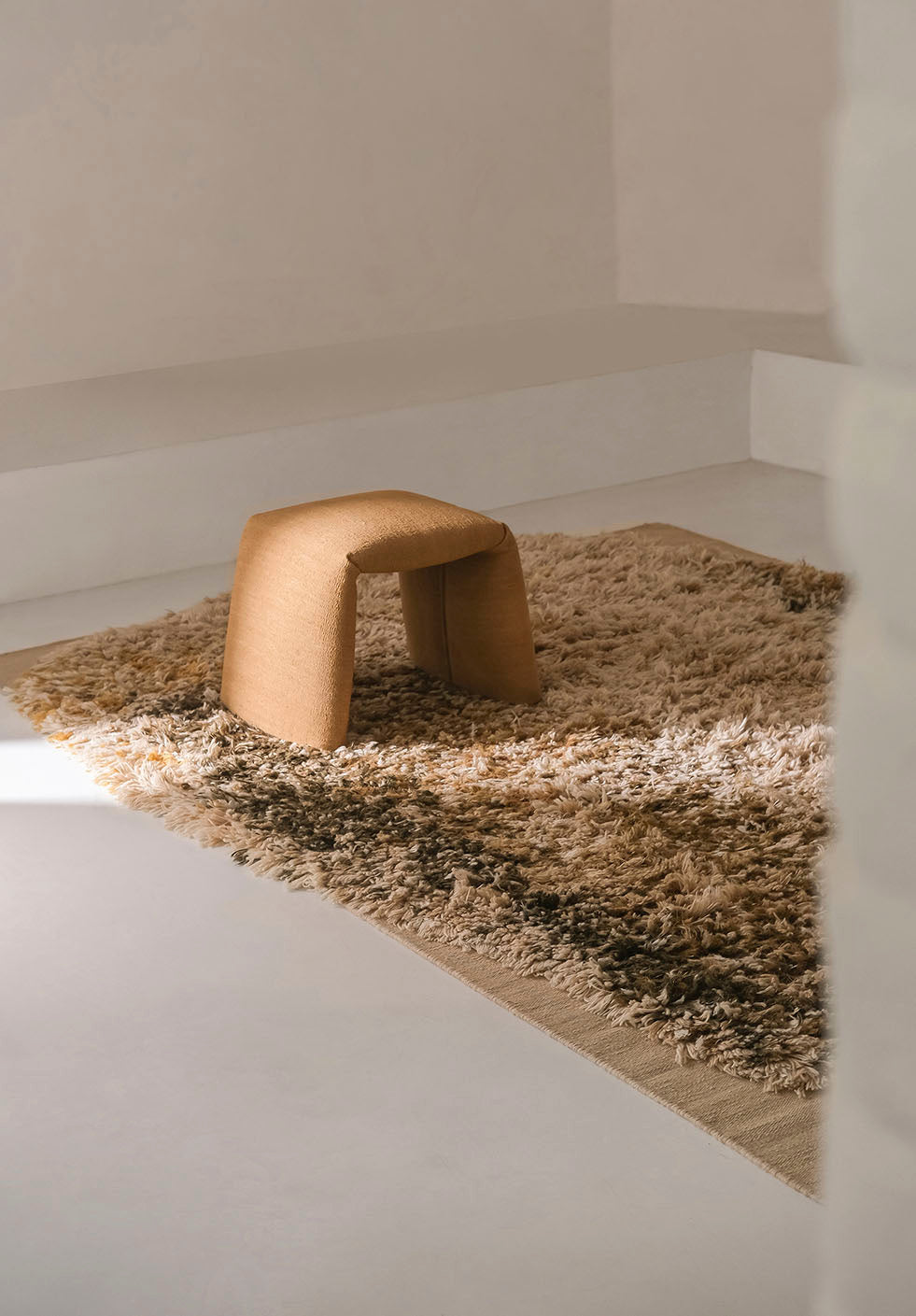 But Nani’s curiosity did not stop there. Her instinct continuously drew her back to textiles, textures, fibers, weaving techniques… and rugs. Together with Estudi Miquel Molina, they persistently sought a form that would emerge organically from the rug itself—and they found it. A simple gesture, folding the rug, gave birth to Folded.