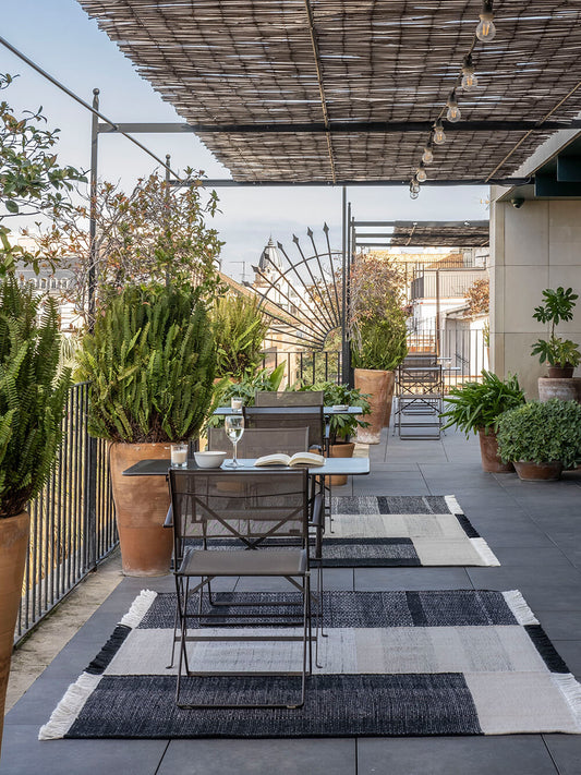 When it comes to outdoor rugs, durability is key. They must withstand water and humidity well, and at the same time wear resistance and good thermal properties. With our recent innovation, we have elevated their durability. The PET fibers we use, are exceptionally resilient, making our outdoor rugs and accessories built to last.