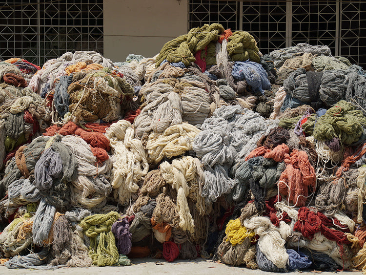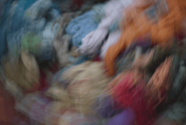 The yarns are manually shredded into small pieces before being mechanically opened and transformed back into fiber.