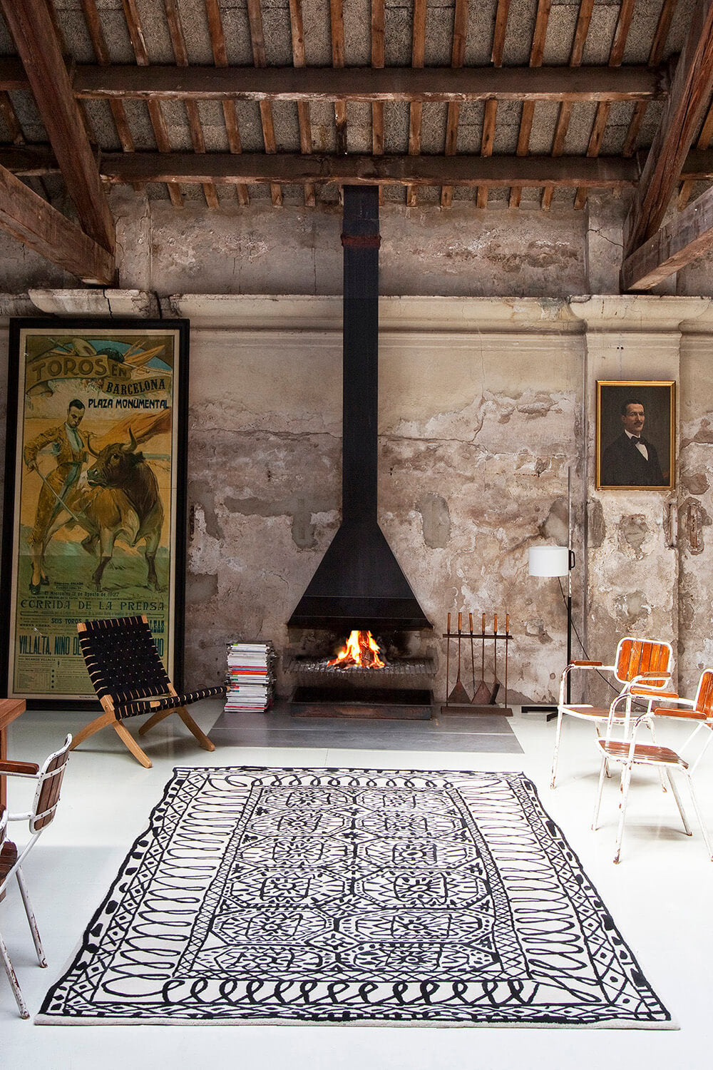 The combination of black and white intensifies the identity of each piece. Each rug is a dichotomy, a horizontal canvas. A masterpiece under your feet.