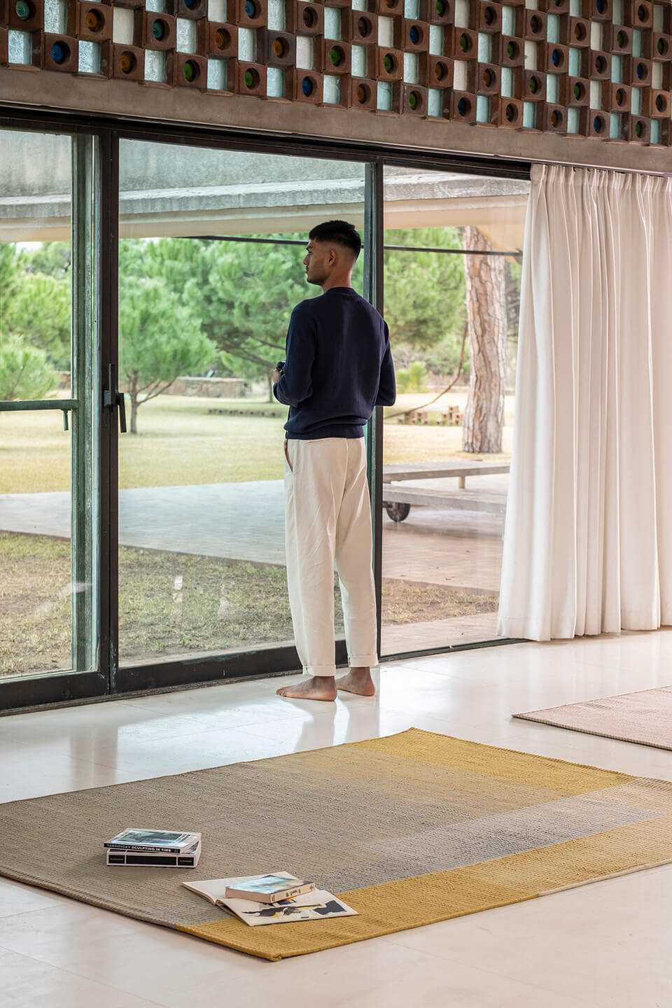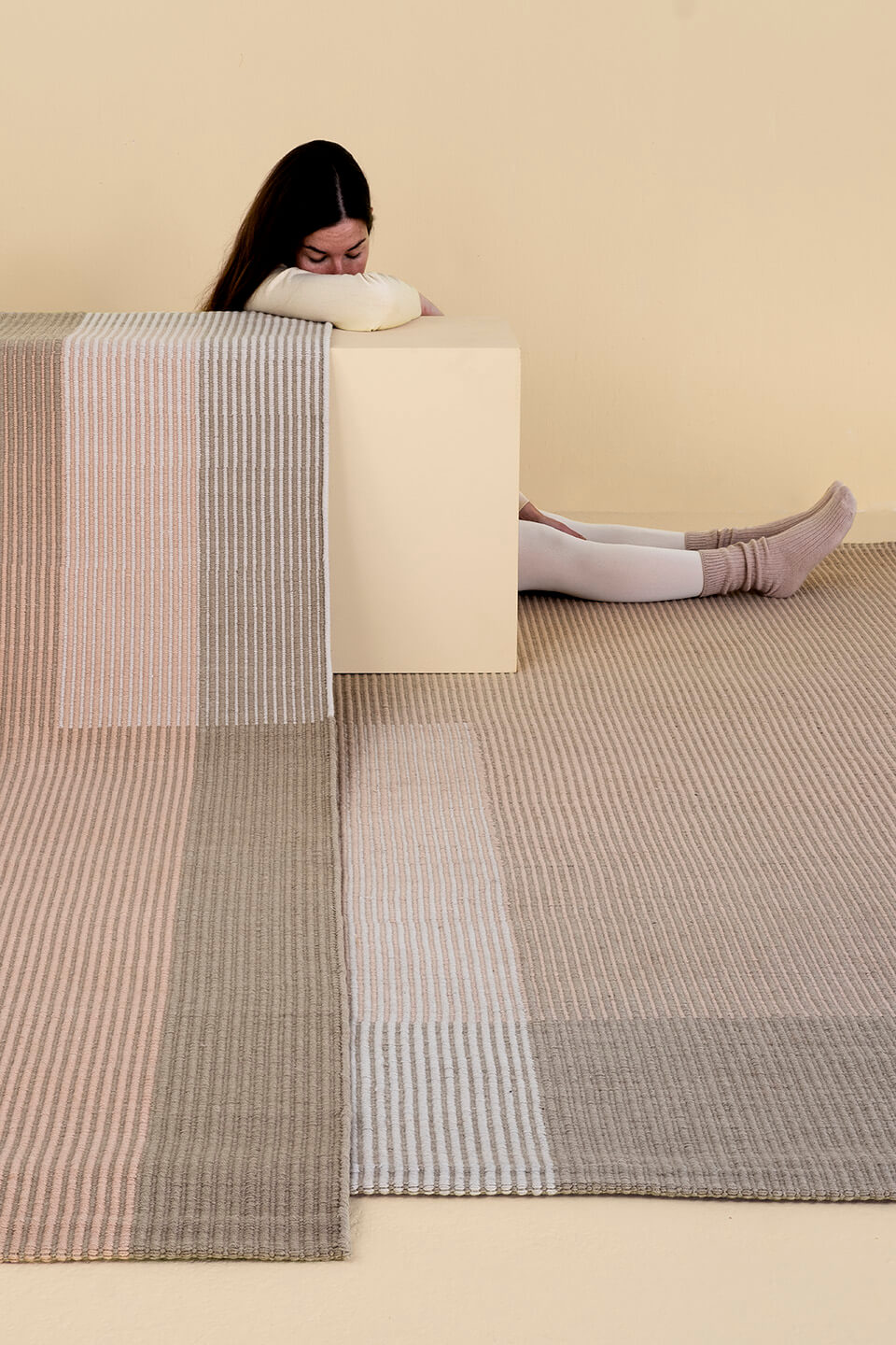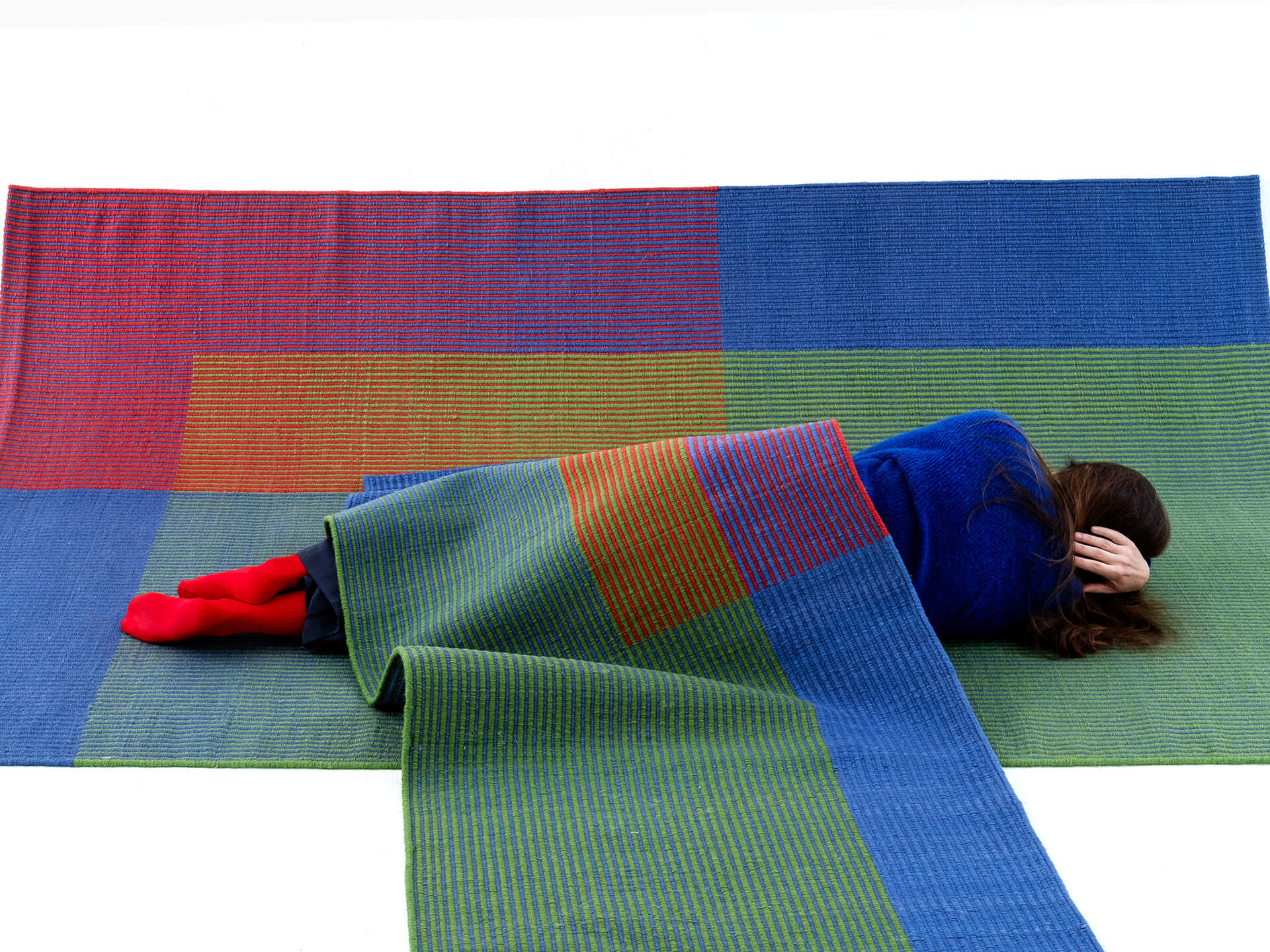 Unlike other creative processes, Haze is a rug devised directly on the loom, as the designer experimented with chromatic interactions and color fading by means of mixing colors optically.
