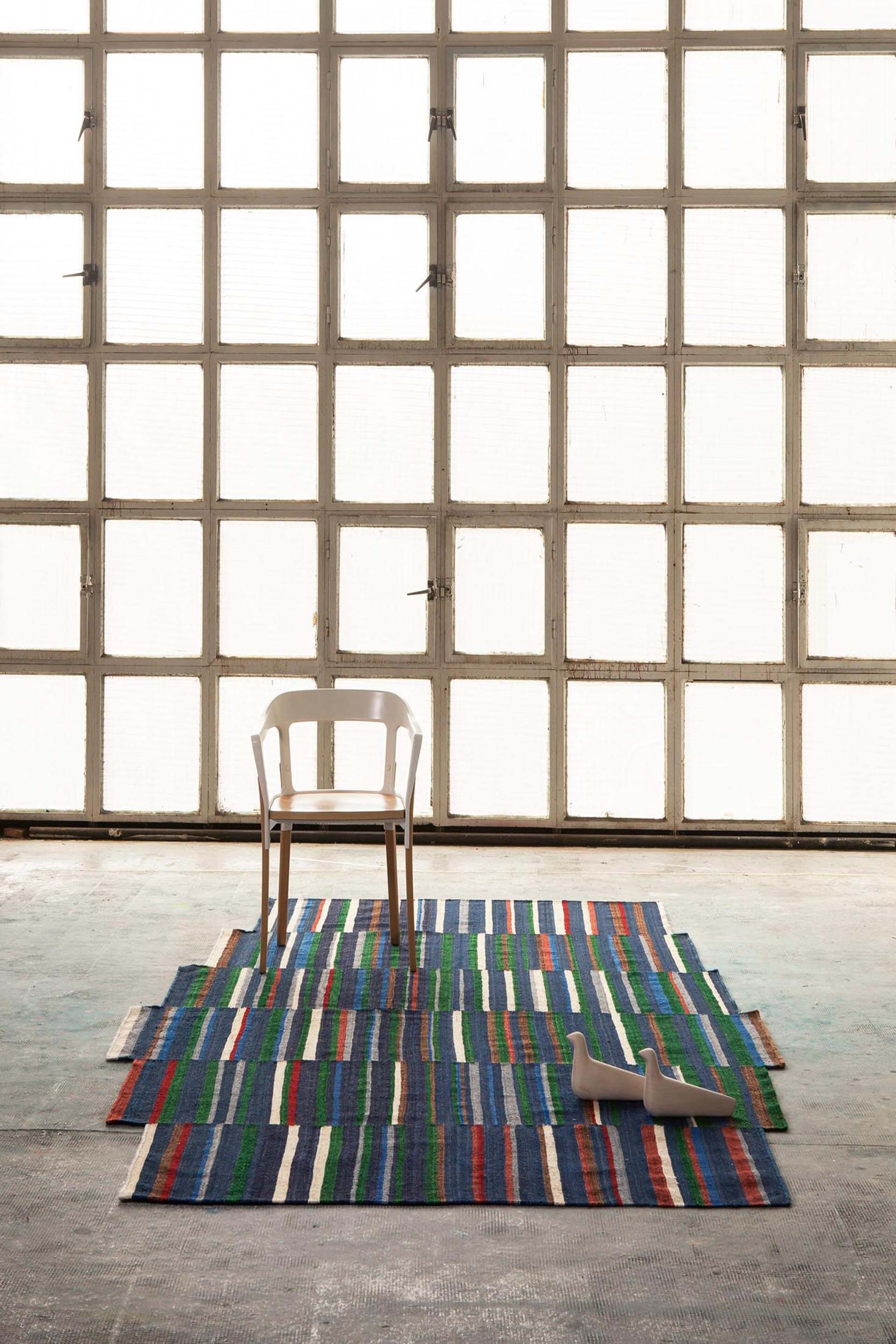 "Rugs are commonly designed as a surface on which a pattern is distributed. However, in the case of Lattice, the pattern is defined as a constructive system to generate the shape of the rug itself. The system of colored bands, where pattern, shape and color are intimately linked, it creates a different realm." — Bouroullec.