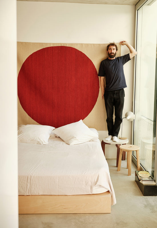 Each Topo rug is handwoven with handspun Afghan wool. A kilim that combines textile tradition with a radically contemporary aesthetic.