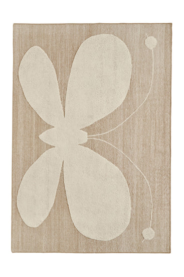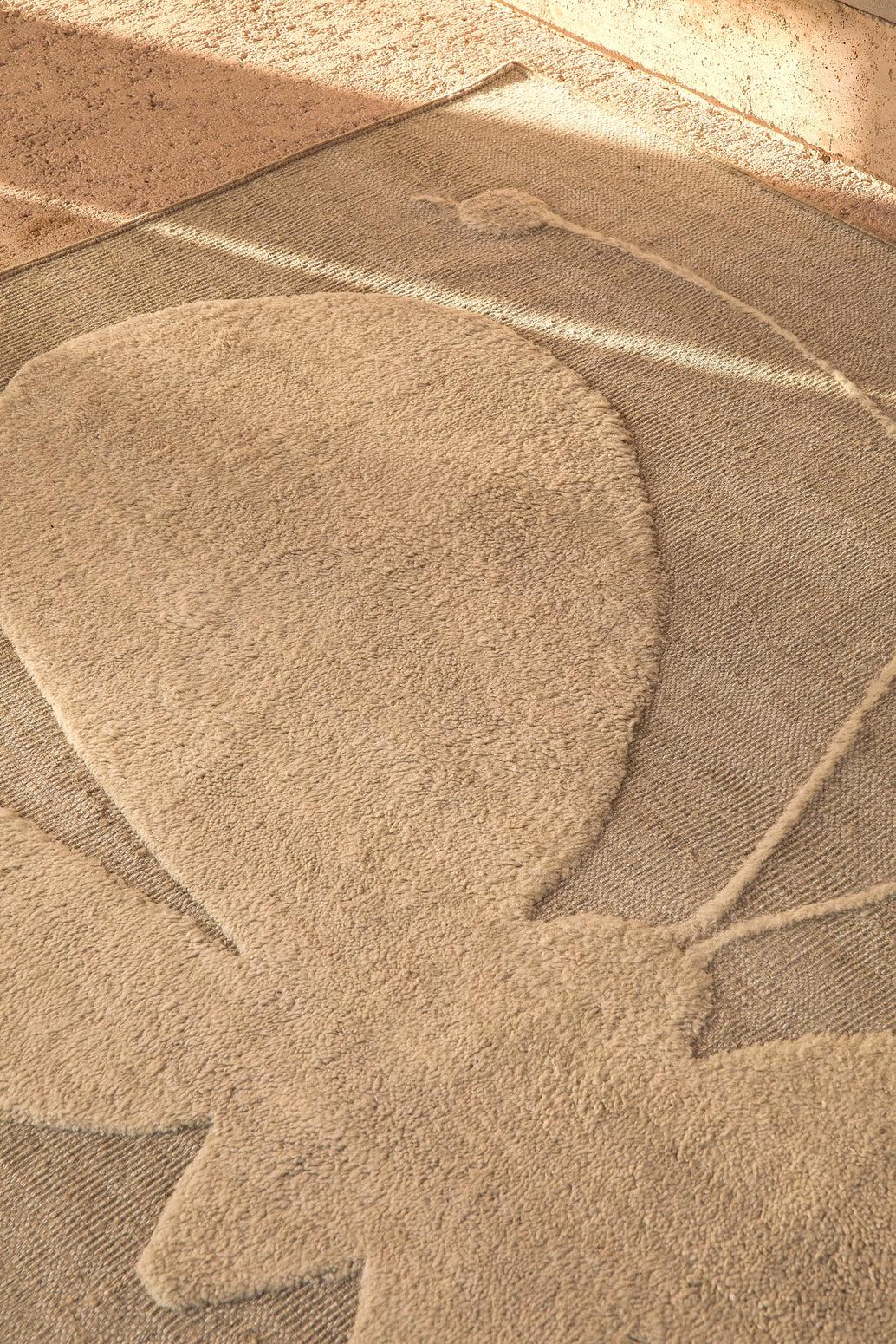 Sunbirds stems from Lucia Eames’ fascination with observing nature up close, translating organic forms into a graphic composition with an almost calligraphic quality. The design unfolds from a central motif that expands outward, reinterpreting traditional rugs through a contemporary lens.
