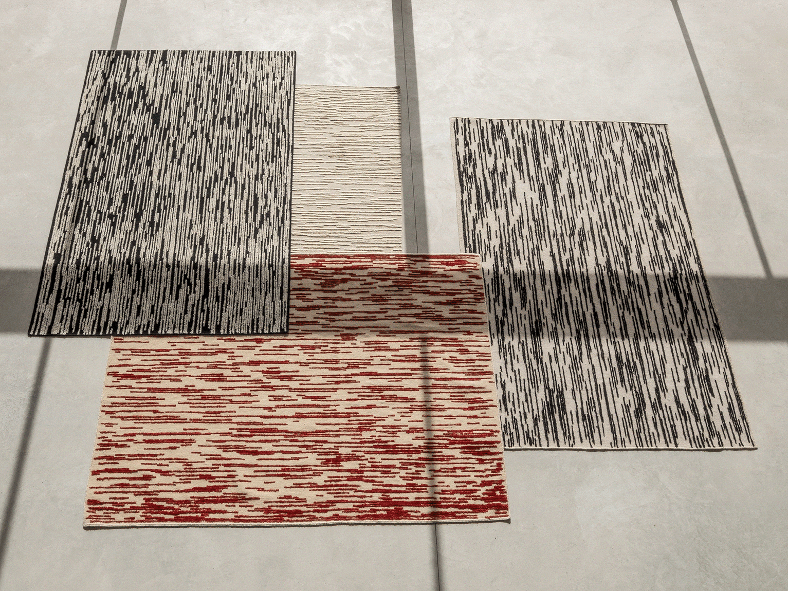 Doblecara, designed by Ronan Bouroullec, reflects his spirit of geometry through subtle linear and intermittent strokes ending in a blurred point, creating a sense of movement in the viewer's eye. Doblecara is a reversible rug, both sides of which can be enjoyed. The ‘A’ side shows the design with the most personality where its stright black lines stand out in their maximum expression, thanks to the different levels between techniques, while the ‘B’ side is the most subtle and delicate where its raw tone stands out together with soft dark strokes.