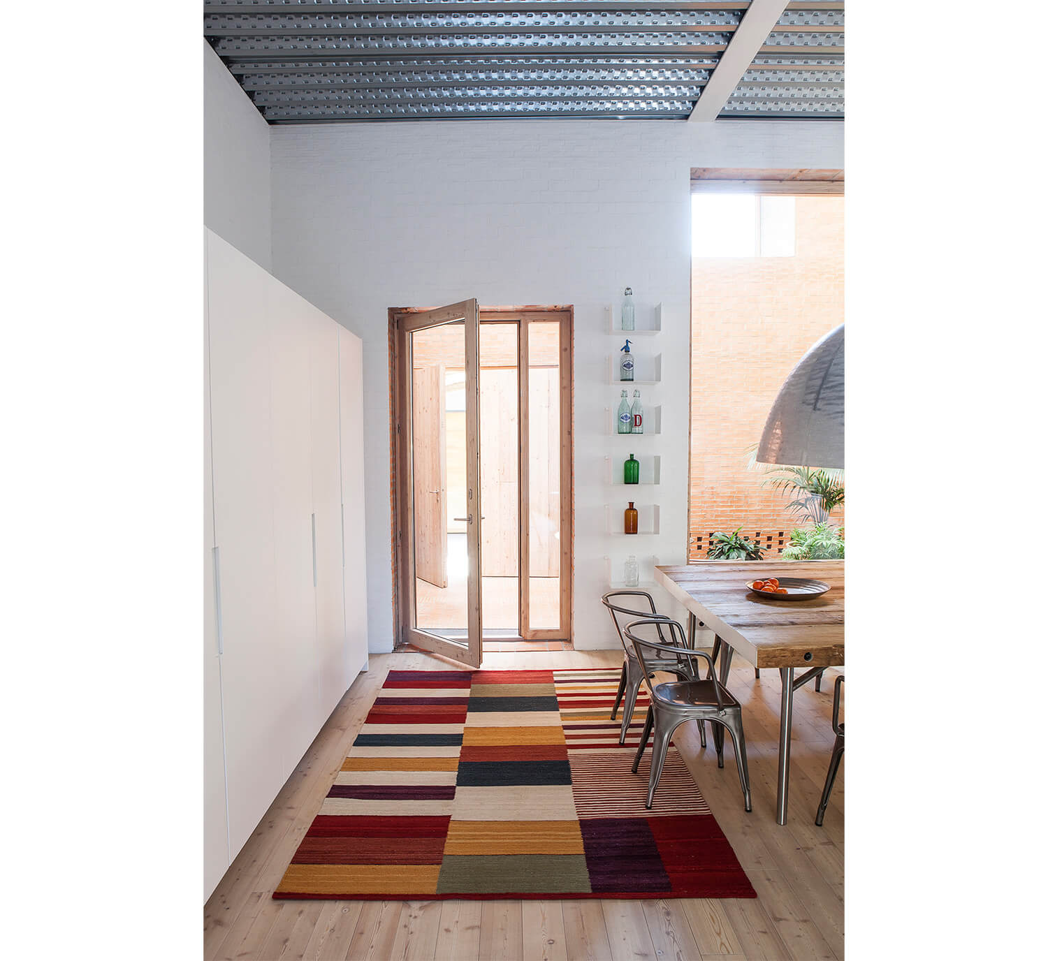 This collection represents nanimarquina's raison d'être: the desire to transform the traditional rug into a contemporary item. Using the ancestral, hand-loomed kilim technique and a carefully selected color palette, expert craftsmen bring to life the geometric pattern designed by Nani Marquina.