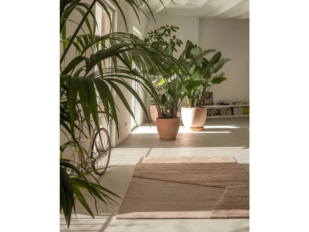 Oblique captures the most contemporary conceptualization of the tradition of overlaying rugs. This proposal is achieved through the juxtaposition of oblique figures resulting in a geometric finesse, thanks to the different techniques used and the height of the pile, while providing monochromatic volumes to its surroundings. Oblique is an elegant indoor rug with a minimalist design that makes it easy to fit into any space.