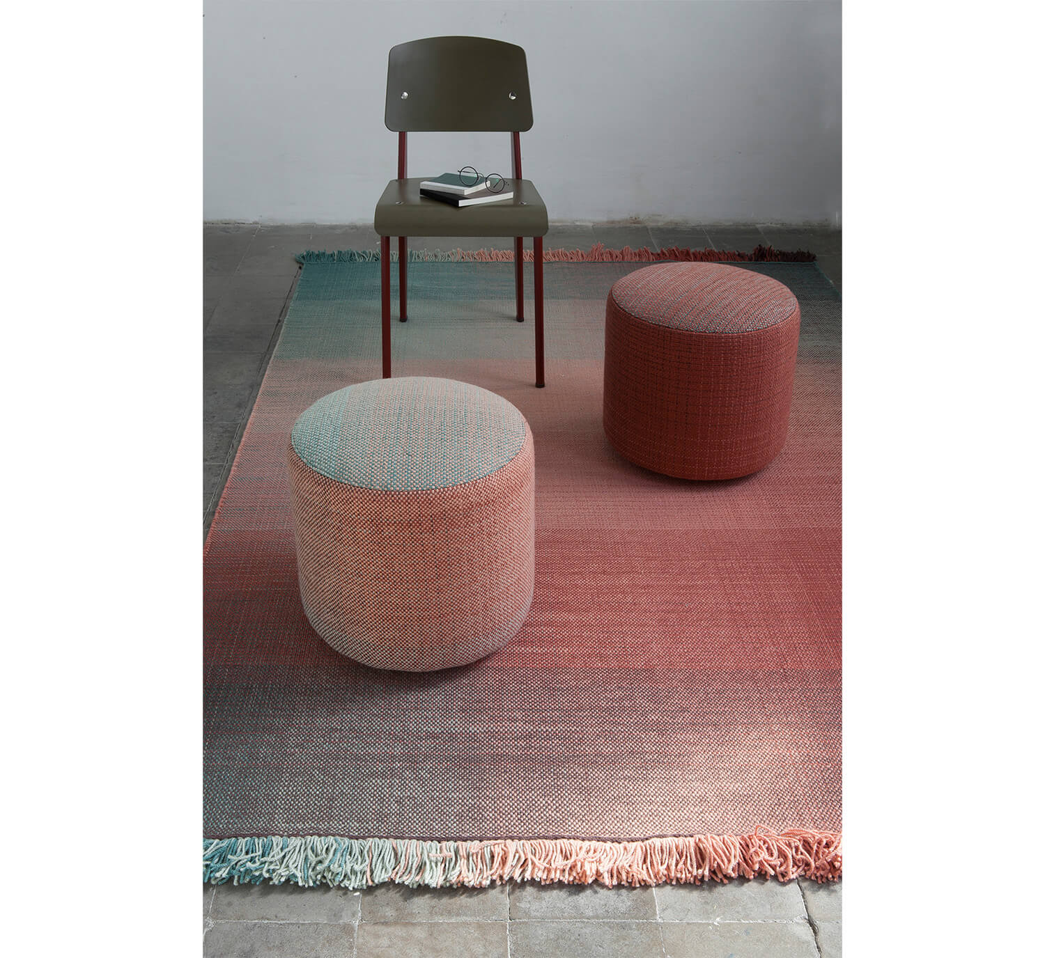The warm-colored Pouf 1A model can be used on its own or together with the Shade rug in the same color.