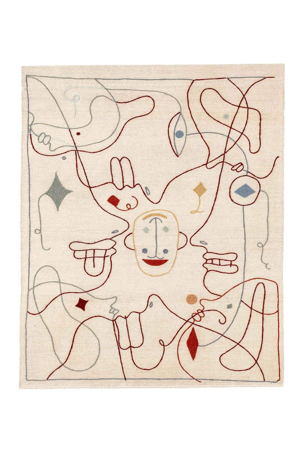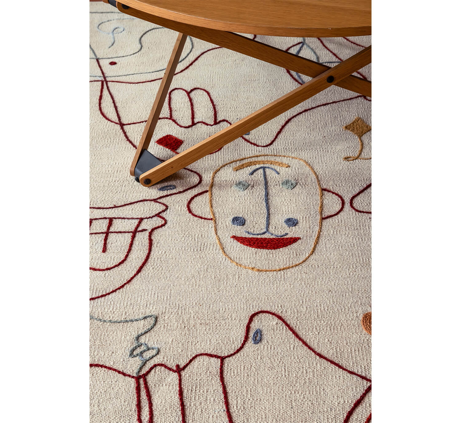 The imaginary characters of artist and designer Jaime Hayón come to life through the technique of embroidery. A laborious handmade process that adds texture and a soft volume emphasizing the sinuosity of the drawing.