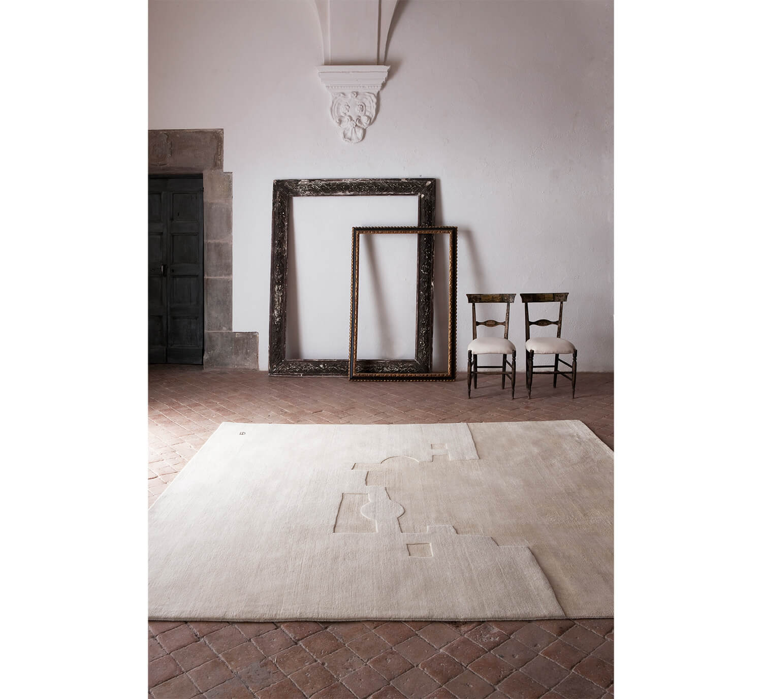 This tension was our prime focus in transforming hiswork into a rug. Playing with ancestral techniques, New Zealand wool fiber and different heights, the suspension that Chillida was looking for has been reflected.