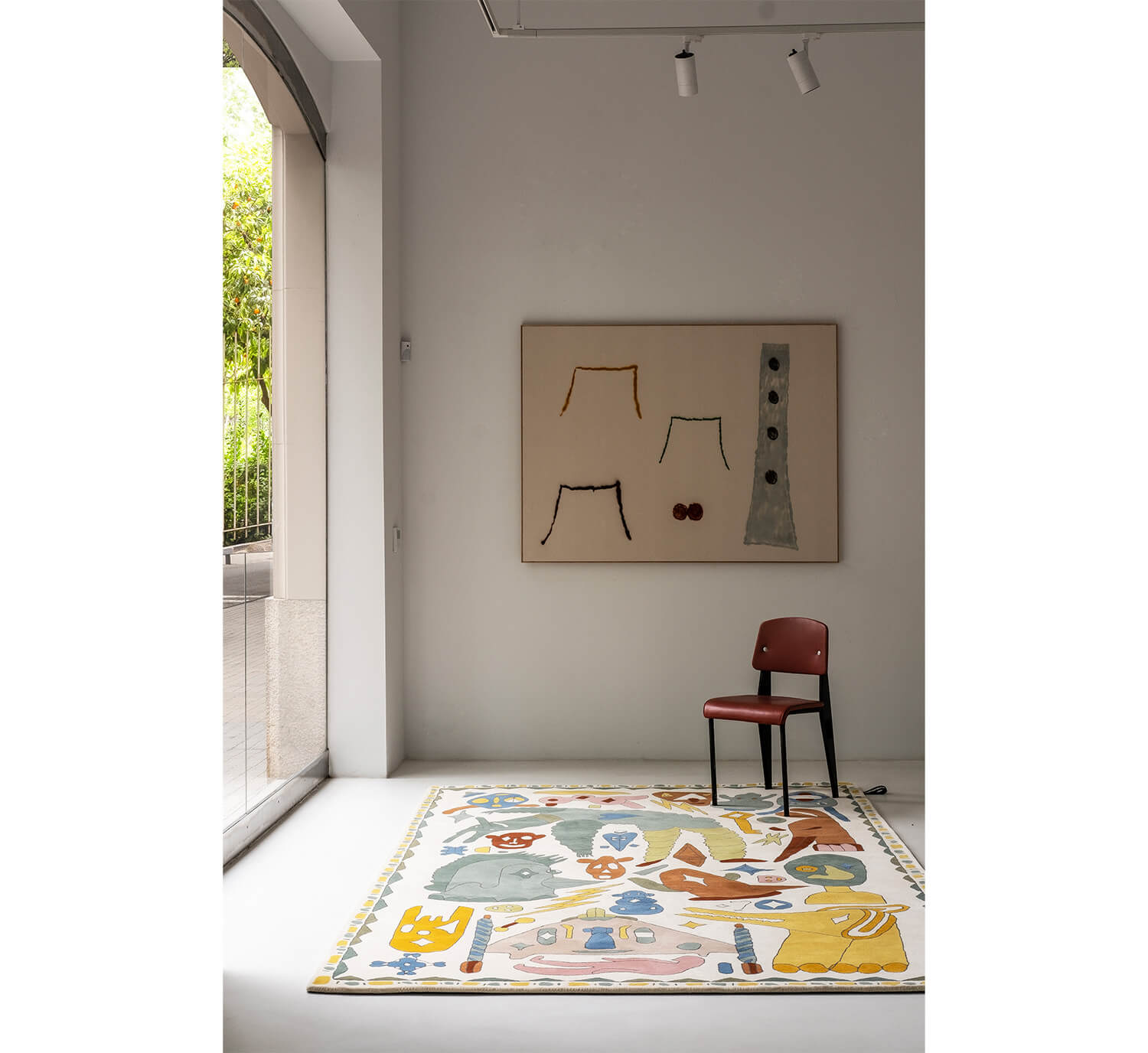 Troupe is a hand-tufted rug that allows the Hayon's work to be transferred literally.